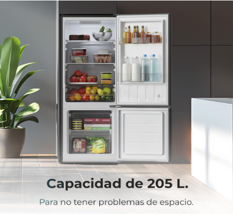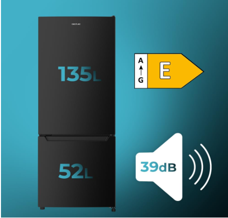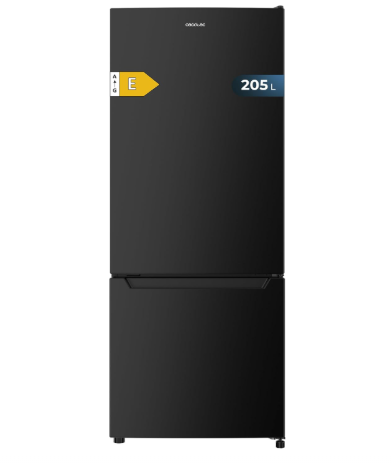 • Frigorífico combi negro con 205 L de capacidad. Clase E: clasificación energética óptima para un frigorífico.
