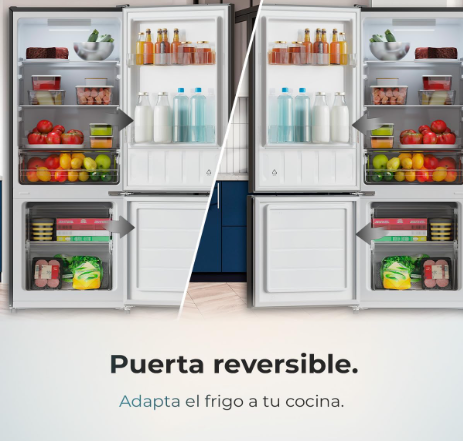 • No te preocupes por el sitio en el que pongas el frigo, la puerta reversible se abrirá en la orientación que más se adapte a ti. Led interior.