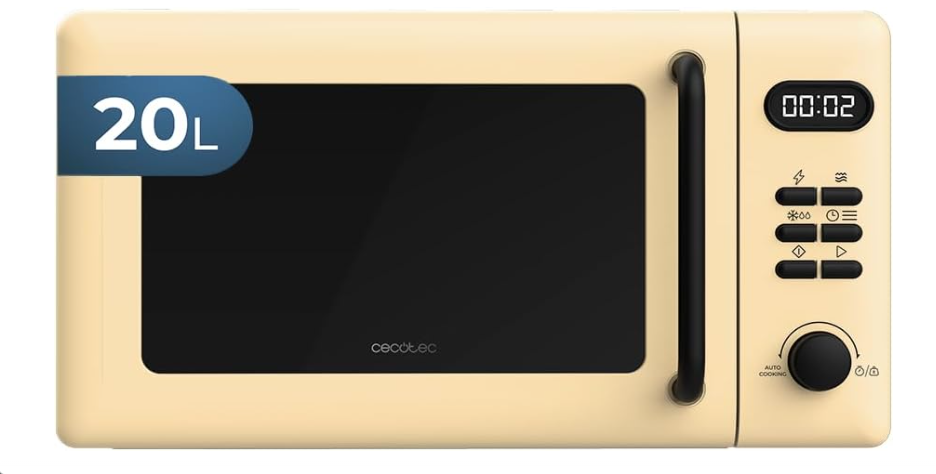 • Microondas digital con 20 litros de capacidad, función grill, 700 W de potencia y con 6 niveles de potencia.