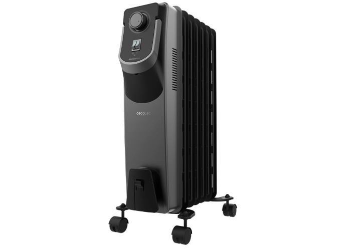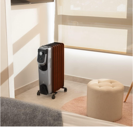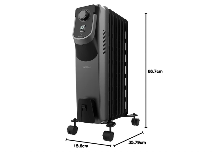Radiador de aceite con 7 módulos de 150 x 580 mm ideal para habitaciones y pequeños salones. Gran potencia de 1500 W para calentar de forma rápida y eficiente la estancia en la cual sea ubicado.